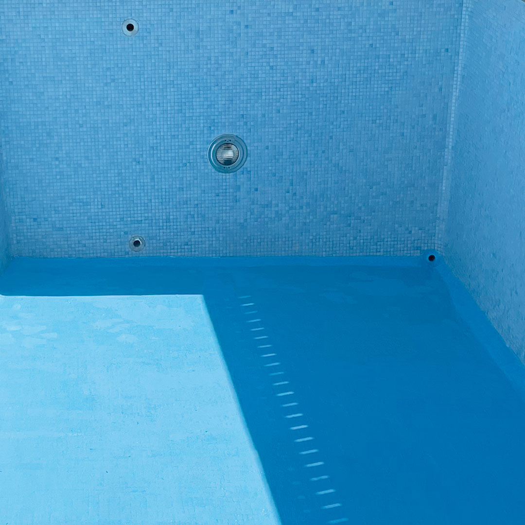 I Nacka målades en betongpool med epoxifärg i ljusblå kulör som ger ett ljust och inbjudande uttryck. Ytan blir jämn och tät samtidigt som den skyddar underlaget mot slitage. Resultatet är en hållbar lösning som ger poolen ett enhetligt och stilrent intryck.