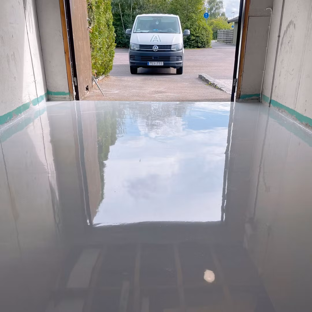 Med epoxygolv och epoxyfärg skapas en dammfri och tålig yta som klarar dagligt slitage. Lösningen passar perfekt i garage där både funktion och utseende är viktigt. Ett epoxigolv ger en hållbar och lättskött yta över tid.