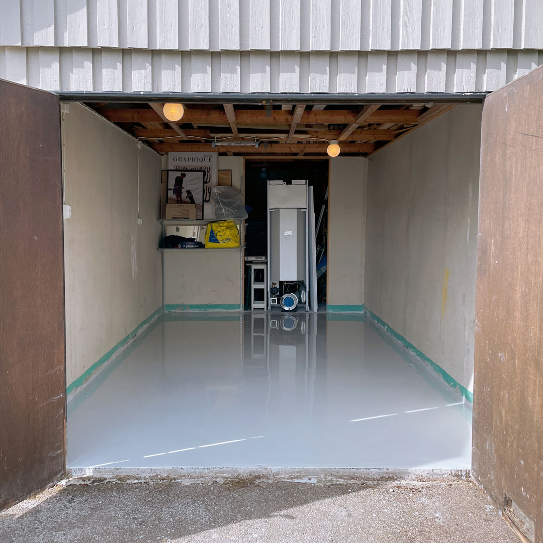 Ett mindre garage i Bjuv har fått ett nytt epoxigolv i ljusgrå nyans. Den ljusa kulören ger ett rent och modernt intryck samtidigt som utrymmet upplevs större. Golvet är både slitstarkt och enkelt att hålla efter.