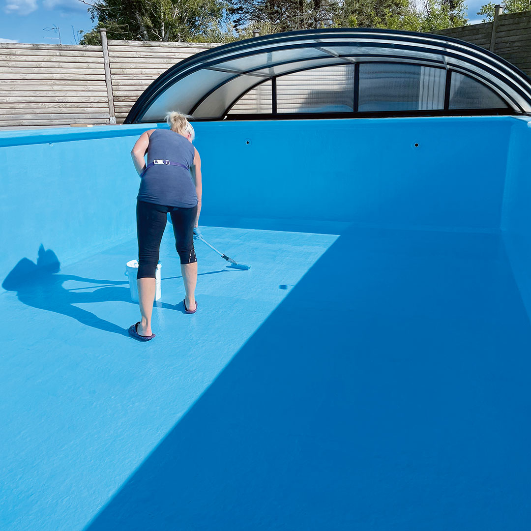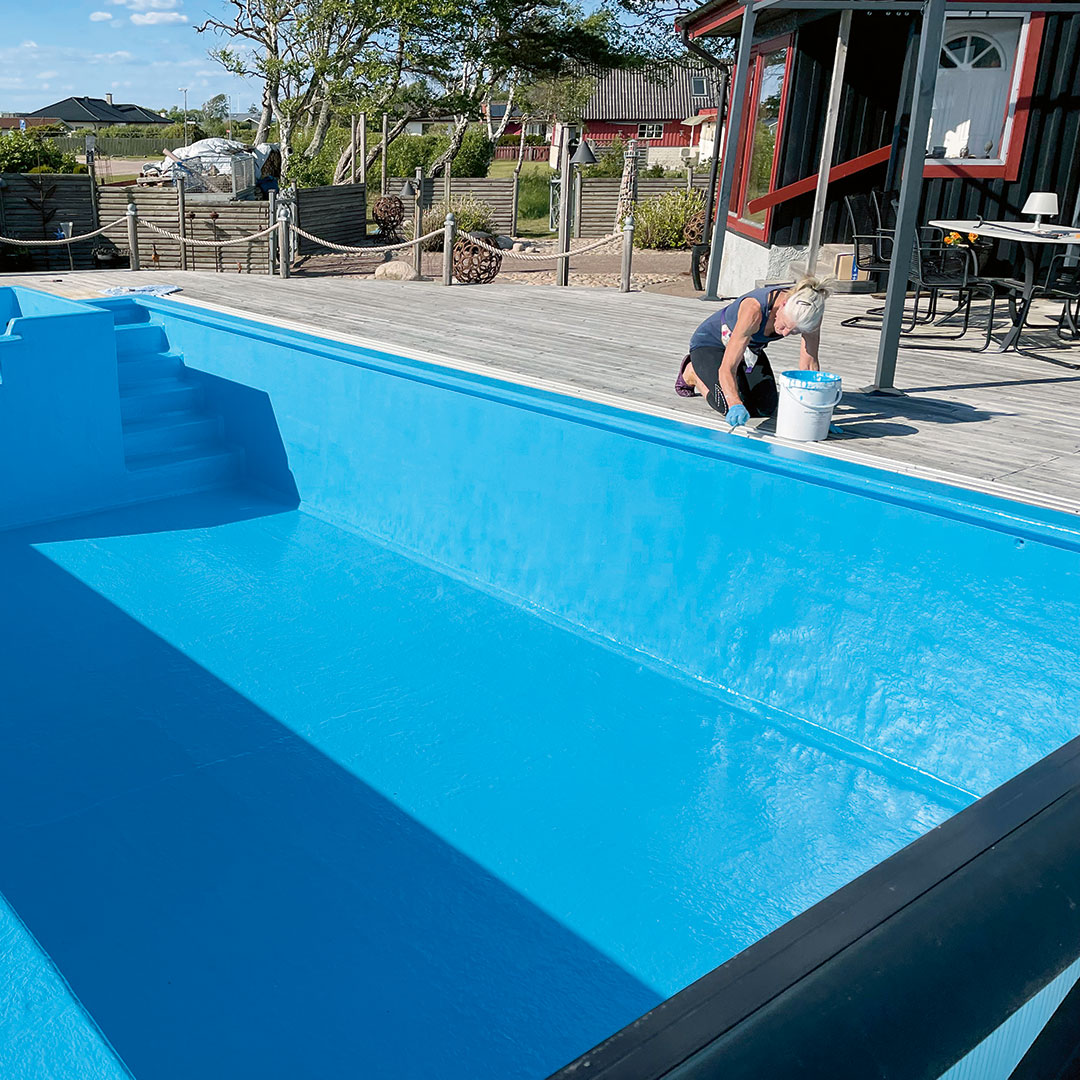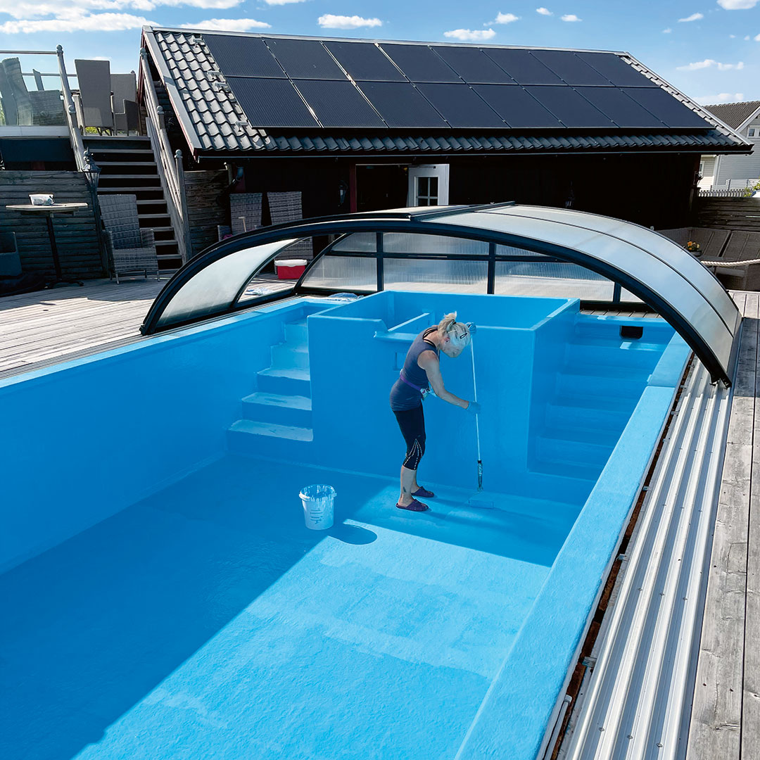 För glasfiberpooler krävs en färg med god vidhäftning och tålighet. Med epoxyfärg skapas en yta som klarar både vatten och slitage utan att tappa finish. Resultatet blir ett hållbart och lättskött poolsystem.